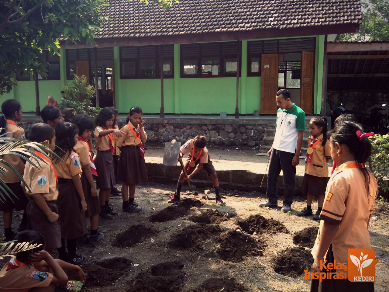 Jam mengajar pun telah selesai, tibalah waktu untuk penyemaian selendang duta cita-cita dari tiap kelas. Saya pun ditunjuk sebagai penyemai selendang cita-cita. Murid tersebut sangat terlihat bahagia dan penuh semangat. Puncak kegiatan Kelas Inspirasi Kediri 4 ini, ada aktifitas penanaman pohon. Saya pun menggali lubang dan pohon tersebut ditanam oleh perwakilan siswa dan siswi.